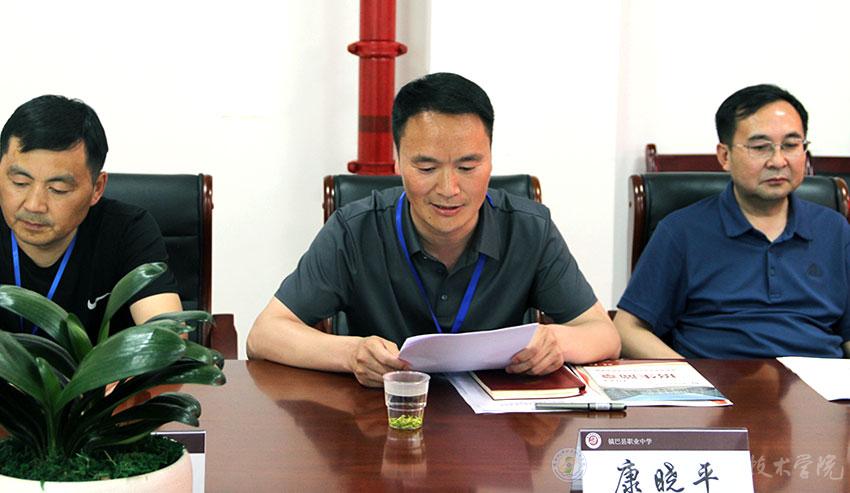 鎮(zhèn)巴縣職業(yè)中學(xué)校長(zhǎng)康曉平介紹幫扶工作開(kāi)展情況