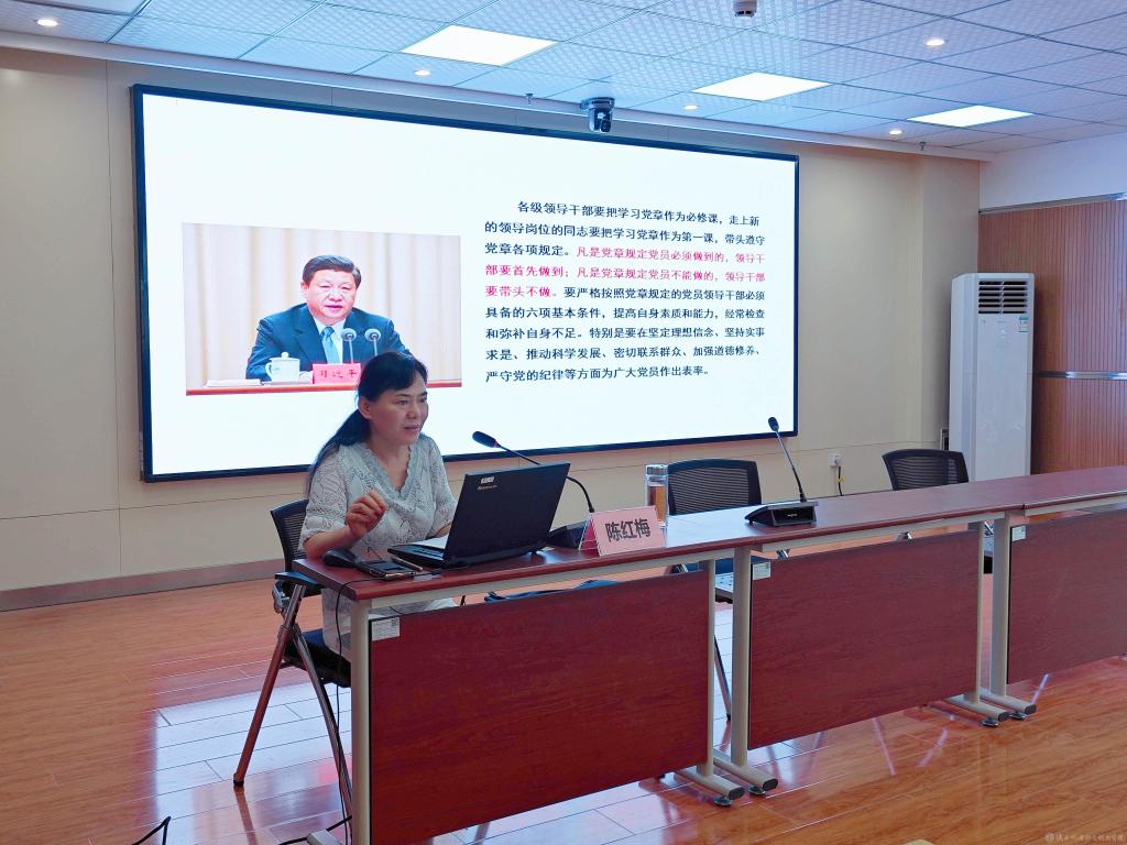 為深入貫徹落實(shí)習(xí)近平總書記關(guān)于“學(xué)習(xí)黨章、遵守黨章、貫徹黨章、維護(hù)黨章”的要求,扎實(shí)推進(jìn)主題教育、第六個紀(jì)律教育學(xué)習(xí)宣傳月和紀(jì)檢監(jiān)察干部隊伍教育整頓走深走實(shí),6月27日下午4時,黨委副書記、紀(jì)委書記陳紅梅在寶福路校區(qū)汽車機(jī)電大樓四樓視頻會議室講授《學(xué)習(xí)黨章實(shí)踐黨章印在心落在行——做合格的共產(chǎn)黨員》專題黨課?;A(chǔ)部黨支部、經(jīng)管與藝術(shù)學(xué)院黨支部所轄部門全體教職工,紀(jì)委委員、各黨支部紀(jì)檢委員參會,會議由紀(jì)委副書記、紀(jì)律檢查室主任王芙蓉主持。