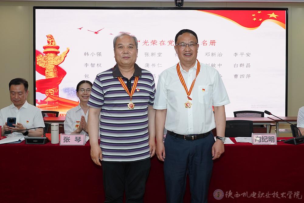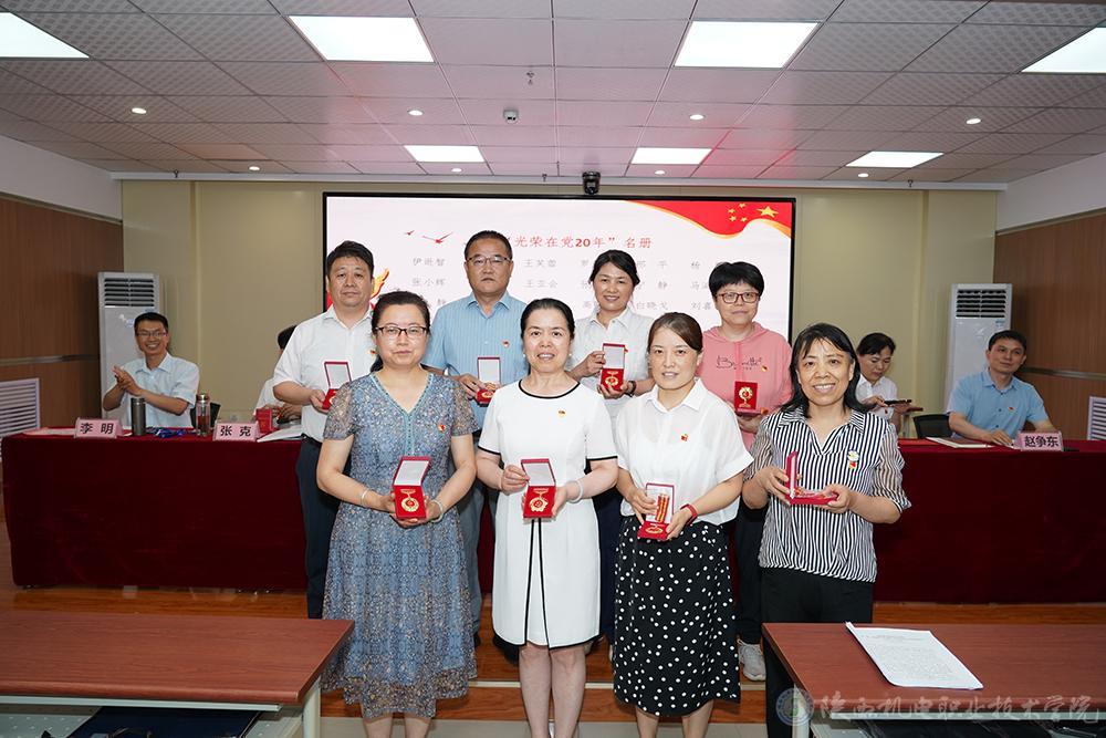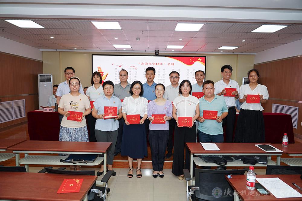 校領導為光榮在黨滿10年的黨員同志發(fā)放政治生日卡,為光榮在黨滿20年、30年的黨員同志發(fā)放黨齡紀念章。