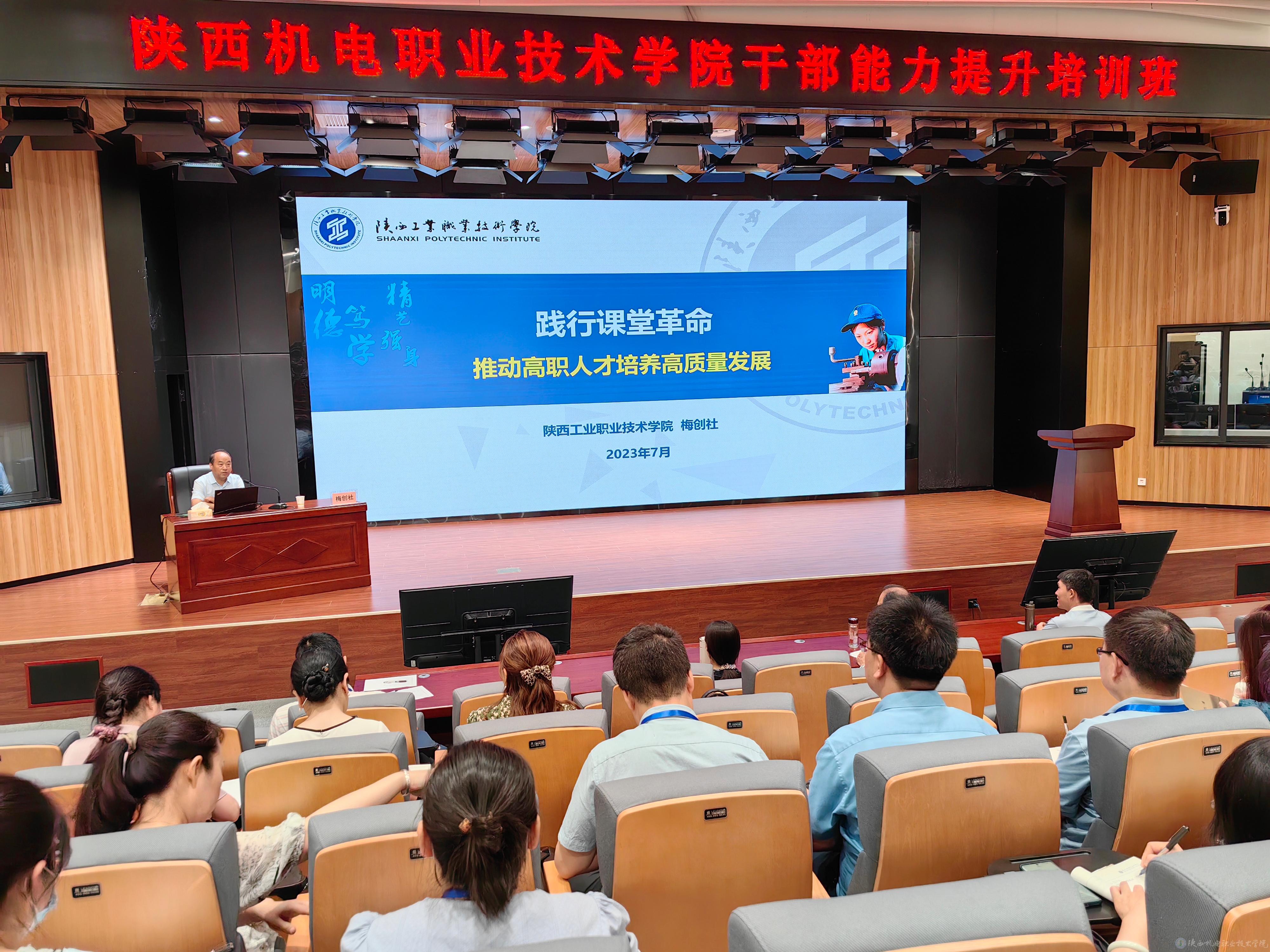 培訓(xùn)期間,陜西工院黨委書記惠朝陽(yáng)以《把握大勢(shì)、明確任務(wù)、履職盡責(zé)努力促進(jìn)職業(yè)教育高質(zhì)量發(fā)展》、院長(zhǎng)劉永亮以《職業(yè)院校高質(zhì)量發(fā)展的思考與探索》、副院長(zhǎng)梅創(chuàng)社以《踐行課堂革命,推動(dòng)人才培養(yǎng)高質(zhì)量發(fā)展》、副院長(zhǎng)段峻以《產(chǎn)教融合、校企合作,創(chuàng)新人才培養(yǎng)新模式》《校園信息化建設(shè)及應(yīng)用》、雙高辦主任盧慶林以《雙高專業(yè)群的管理與思考》、科研處處長(zhǎng)劉引濤以《教師科研與社會(huì)服務(wù)能力提升》、學(xué)生處處長(zhǎng)郝軍以《真心如春風(fēng),潤(rùn)物悄無(wú)聲--職業(yè)院校學(xué)生養(yǎng)成教育幾點(diǎn)思考》、信息工程學(xué)院教學(xué)辦主任宋承繼以《職業(yè)院校教師信息化教學(xué)手段應(yīng)用能力提升》、國(guó)家級(jí)精品課程項(xiàng)目主持人楊謙以《國(guó)家級(jí)精品課程建設(shè)、使用與評(píng)價(jià)》為題,分別作專題報(bào)告,解讀黨和國(guó)家有關(guān)政策要求,分析高職院校發(fā)展面臨的新形勢(shì)、新問(wèn)題,分享有益經(jīng)驗(yàn)和實(shí)踐成果。參訓(xùn)學(xué)員還實(shí)地參觀了陜西工院馬克思主義學(xué)院教學(xué)實(shí)訓(xùn)室、歐姆龍實(shí)訓(xùn)室、材料學(xué)院實(shí)訓(xùn)室、加工中心和汽車實(shí)訓(xùn)室等地。