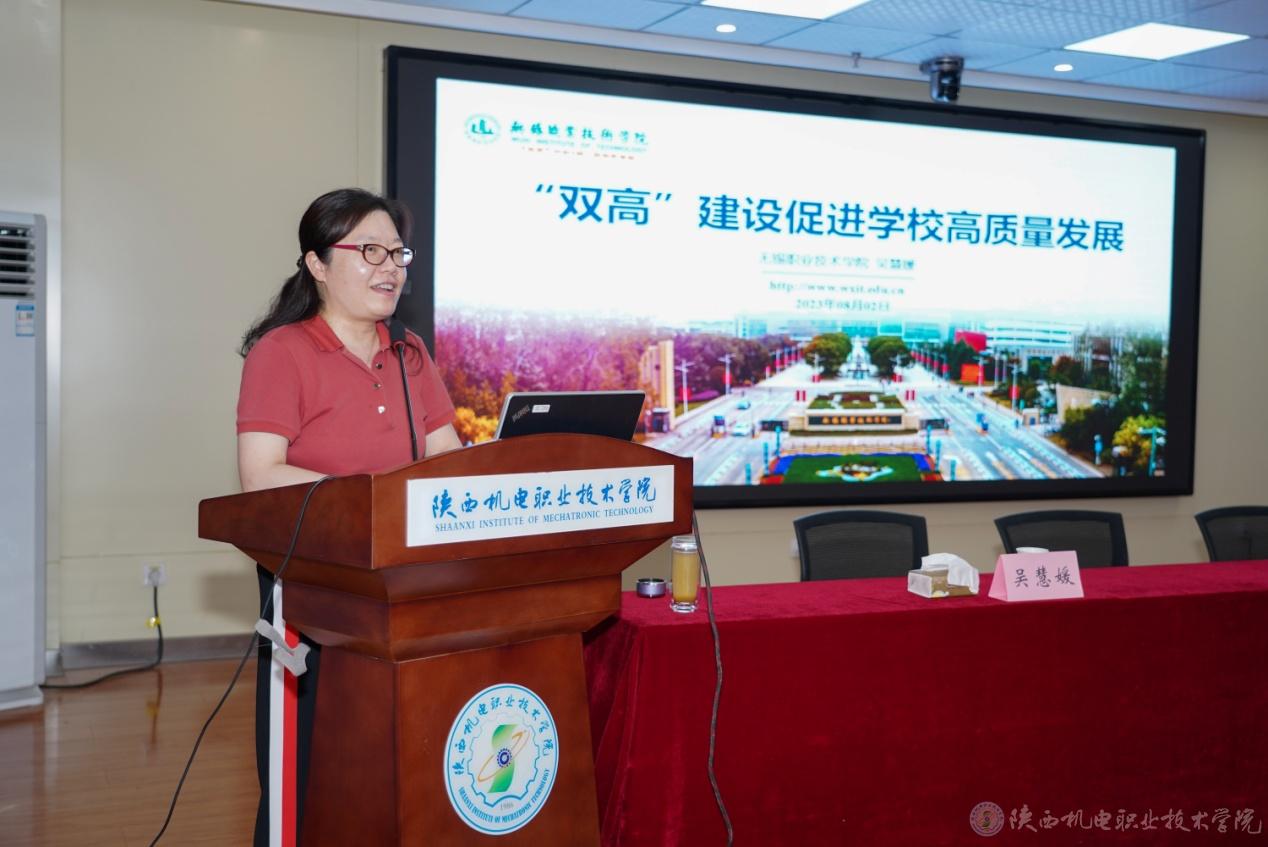 學(xué)習(xí)交流會(huì)分為兩個(gè)階段,第一階段由吳慧媛副校長(zhǎng)為我校做《“雙高”建設(shè)促進(jìn)學(xué)校高質(zhì)量發(fā)展》專(zhuān)題講座,講座由張克副院長(zhǎng)主持。吳慧媛副校長(zhǎng)從職業(yè)教育的機(jī)遇與挑戰(zhàn)、“雙高計(jì)劃”建設(shè)與措施、績(jī)效評(píng)價(jià)、高質(zhì)量發(fā)展路徑四個(gè)方面進(jìn)行詳細(xì)闡述,為我?!半p高”建設(shè)、高質(zhì)量發(fā)展提供思路。