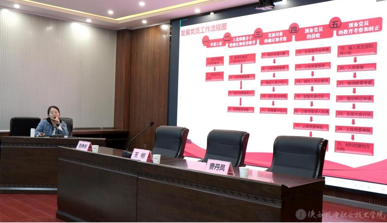 會上,黨委組織部曹丹鳳老師結(jié)合實際,為師生作發(fā)展黨員政策宣講,重點講解了發(fā)展黨員工作流程。