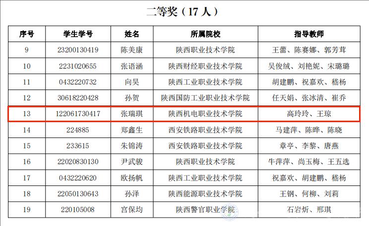 11月4日,2023年陜西省高職高專院校信息素養(yǎng)大賽省賽落下帷幕。我校電子信息學(xué)院張瑞琪同學(xué)在全省22所高校的84位參賽選手中脫穎而出,通過全國高職高專院校信息素養(yǎng)大賽校賽、省賽的重重考驗(yàn),以省賽二等獎的成績突破重圍,順利進(jìn)入2023年高職高專院校信息素養(yǎng)大賽國賽!