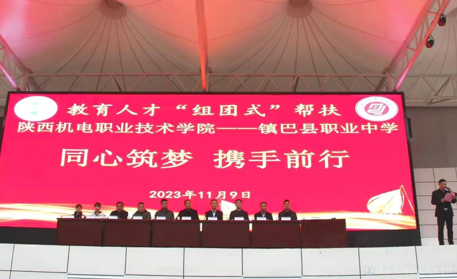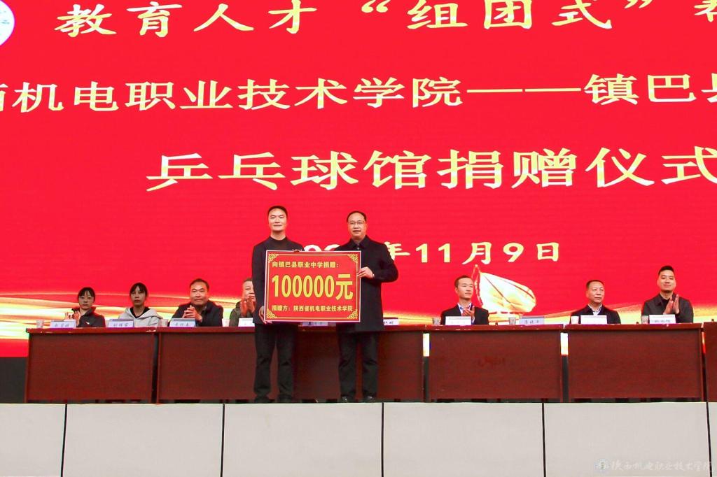 活動現(xiàn)場,在鎮(zhèn)巴縣職業(yè)中學(xué)全體師生的見證下,陜西機(jī)電職院向鎮(zhèn)巴縣職業(yè)中學(xué)捐贈10萬元建設(shè)室內(nèi)乒乓球館。