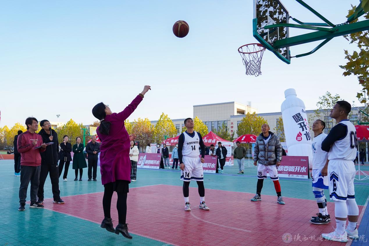 比賽間隙安排了教職工趣味籃球賽。比賽分為兩個賽項,男子組定點三分球大賽和女子組定點罰籃比賽,全校三十多名教師熱情參與。