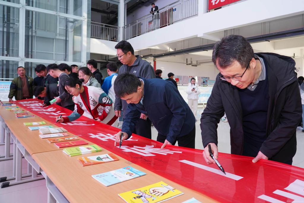 活動中,師生共同在寫有“民族團結(jié)一家親 同心共筑中國夢”的橫幅上莊重地簽下自己的名字。黨委統(tǒng)戰(zhàn)部、保衛(wèi)處工作人員通過發(fā)放宣傳資料、互動交流等方式廣泛宣傳黨的民族政策、法律法規(guī)及民族基本知識。