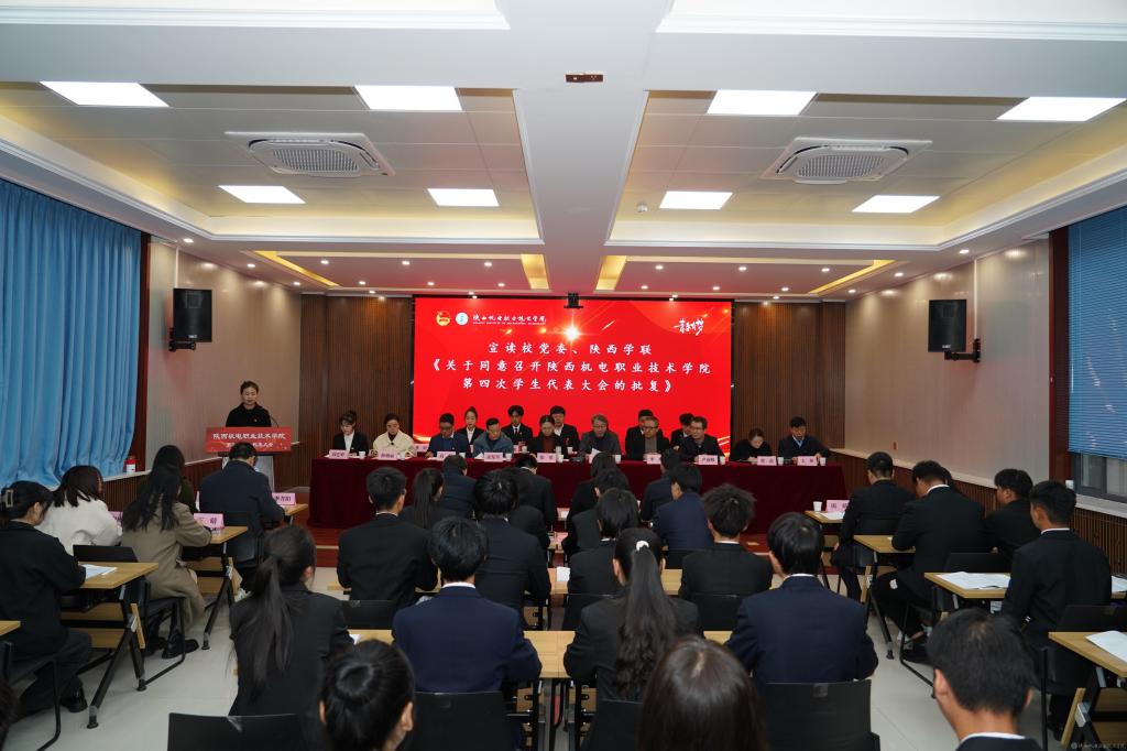 大會在莊嚴激昂的國歌聲中開幕。王建斌宣讀校黨委《關于同意召開陜西機電職業(yè)技術學院第四次學生代表大會的批復》;王樞宣讀《陜西省學生聯(lián)合會關于同意陜西機電職業(yè)技術學院第四次學生代表大會的批復》。