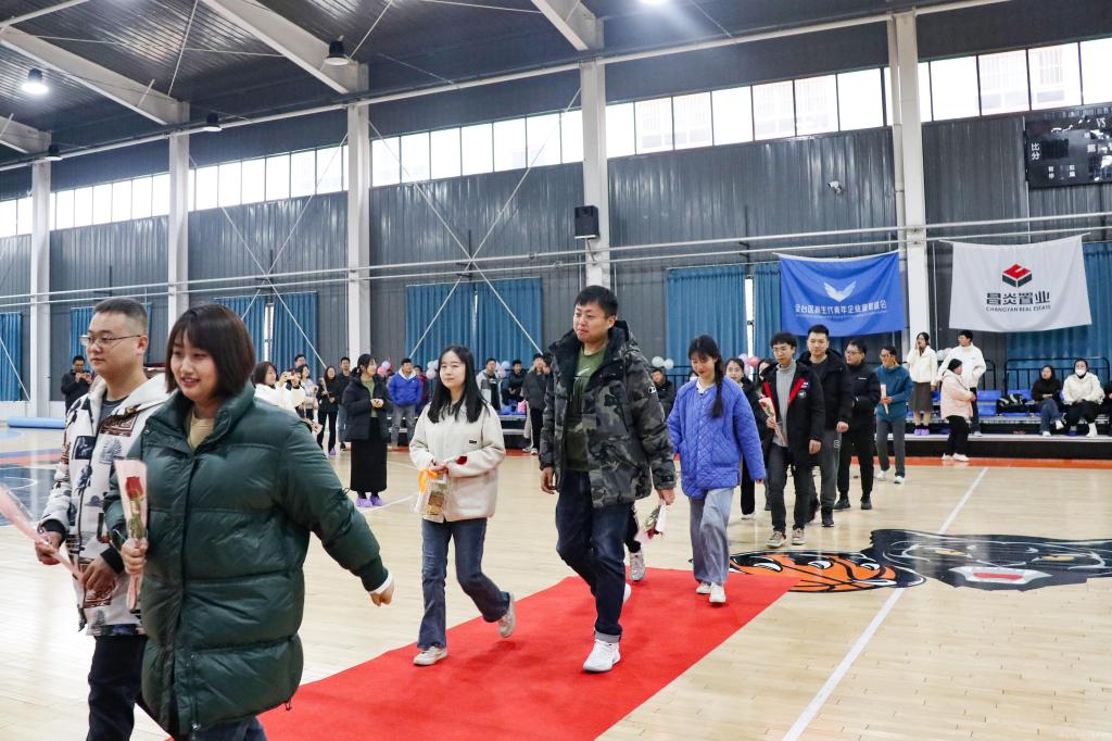 活動(dòng)分為六個(gè)環(huán)節(jié)。室內(nèi)“破冰游戲”首先消除了男女青年職工之間的靦腆情緒,在主持人風(fēng)趣幽默的引導(dǎo)下,現(xiàn)場(chǎng)氣氛變得越來(lái)越輕松活躍,大家全身心投入到一個(gè)個(gè)拓展活動(dòng)項(xiàng)目中來(lái)?!靶挠星ЫY(jié)”“快樂(lè)鏈接”“齊心協(xié)力”等一個(gè)個(gè)有趣的項(xiàng)目在男女職工團(tuán)結(jié)協(xié)作與默契配合下順利完成,短時(shí)間內(nèi)一句話、一個(gè)眼神、一個(gè)舉動(dòng),也許就是緣分開(kāi)始?;顒?dòng)還穿插了“黨的理論知識(shí)問(wèn)答”環(huán)節(jié),答對(duì)題目者更有精美小禮品贈(zèng)送?;顒?dòng)現(xiàn)場(chǎng),大家敞開(kāi)心扉、全情投入,在游戲中不斷加深印象、了解彼此、展現(xiàn)魅力。在最后的“送花表白”環(huán)節(jié)中,我校有4對(duì)教職工牽手成功,攜手打卡并互留了聯(lián)系方式,工作人員為每對(duì)牽手嘉賓頒發(fā)禮品,大家合影留念,定格美好記憶。