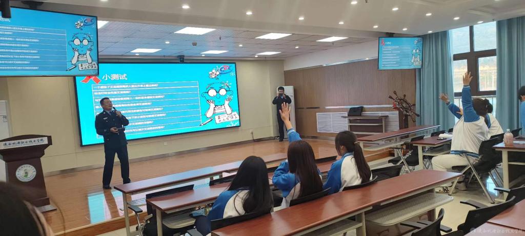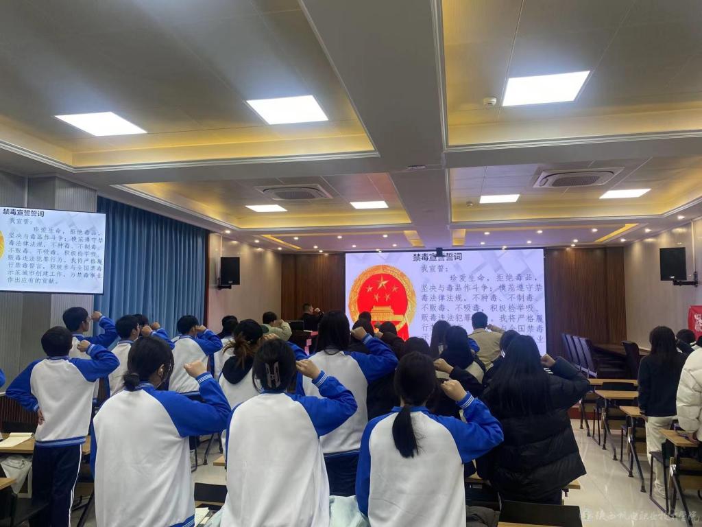 曹升儒從毒品的種類、毒品的危害、毒品與艾滋病的關(guān)系以及艾滋病的流行情況、傳播途徑、如何預(yù)防等方面進行了介紹,通過一個個觸目驚心的案例、一串串驚人的數(shù)據(jù),生動形象地闡述了毒品和艾滋病的危害,并帶領(lǐng)全體學(xué)生進行禁毒宣誓,最后還設(shè)立了互動環(huán)節(jié),通過問答和發(fā)放小禮品的形式,讓同學(xué)們加深對禁毒防艾核心知識的印象。