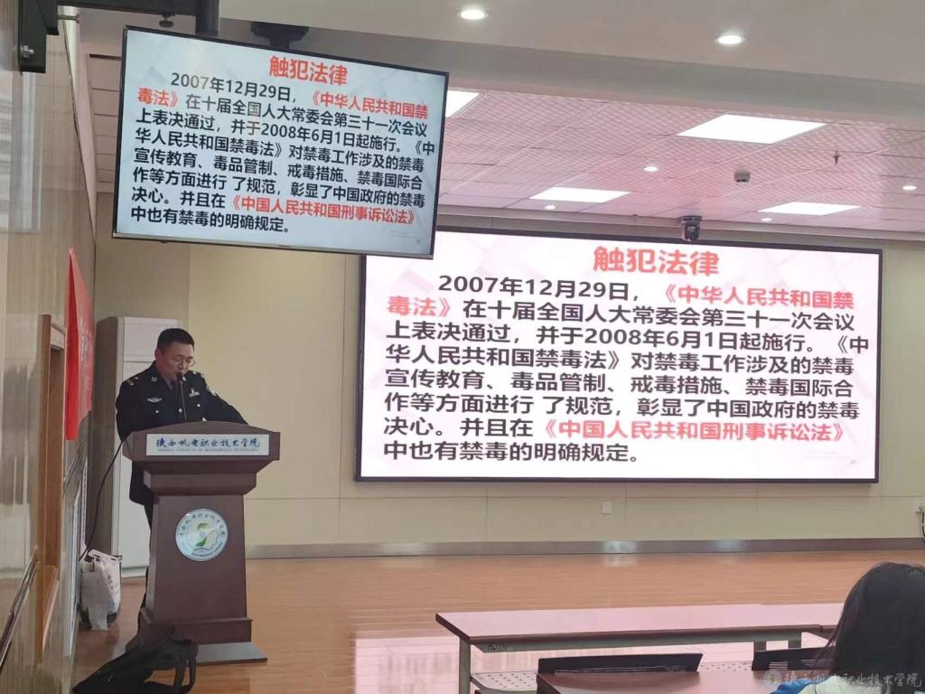 為進一步提升大學(xué)生法治意識和防范能力,促進學(xué)生掌握禁毒防艾知識,助力省級“平安校園”復(fù)審工作,我校邀請寶雞市強制隔離戒毒所醫(yī)務(wù)科科長曹升儒于11月22日、28日分別在寶福路、蟠龍校區(qū)開展禁毒教育暨艾滋病防治專題講座。