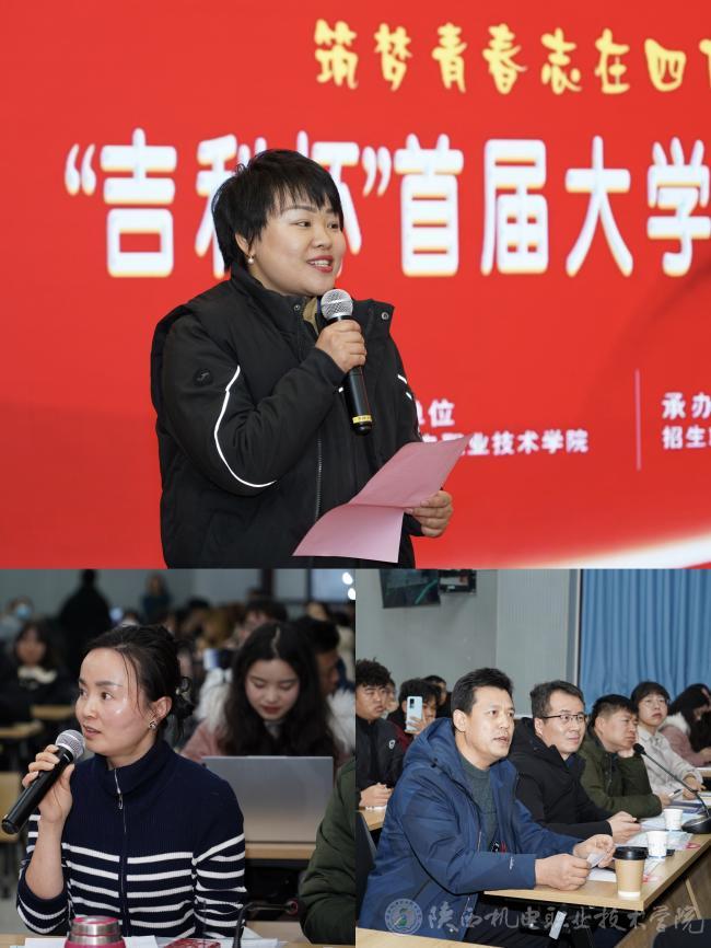 寶雞吉利汽車人力資源部部長張晶、寶雞市公共就業(yè)服務(wù)中心科長王新剛、陜西晨華信息科技有限責(zé)任公司總經(jīng)理韓曄、寶雞華信誠電子科技有限公司總經(jīng)理杜海衛(wèi)和招生就業(yè)處、二級(jí)學(xué)院相關(guān)負(fù)責(zé)人擔(dān)任此次比賽評(píng)委。
