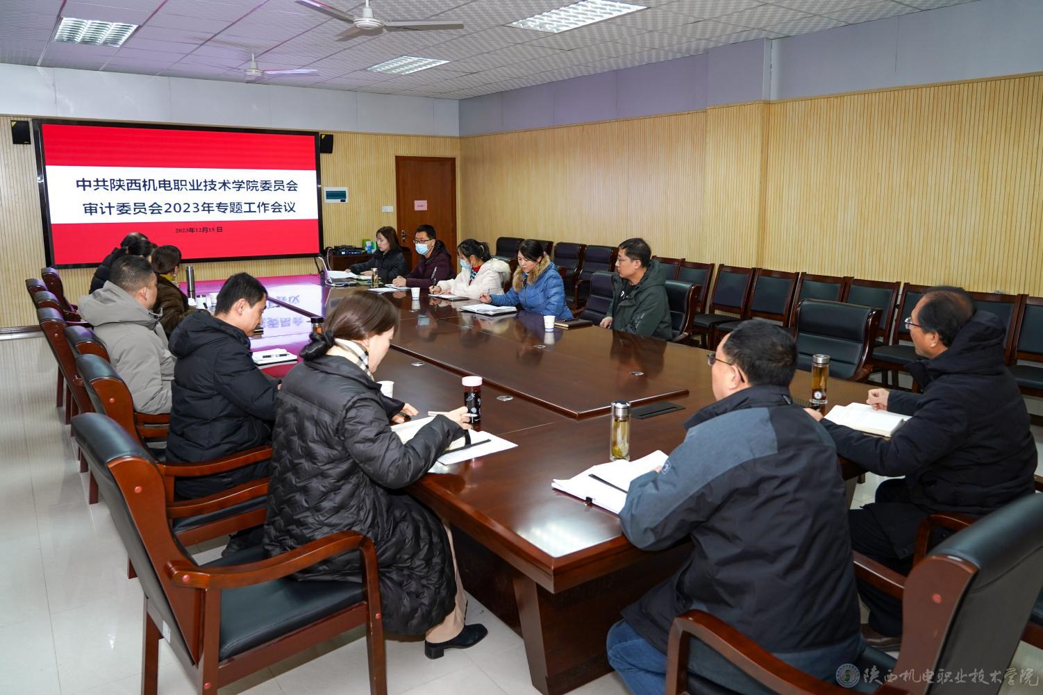 12月15日上午,陜西機(jī)電職業(yè)技術(shù)學(xué)院黨委審計(jì)委員會(huì)在蟠龍校區(qū)圖書樓二樓會(huì)議室召開2023年專題工作會(huì)議,校黨委書記、審計(jì)委員會(huì)主任伊遜智主持會(huì)議并講話,黨委副書記、院長、審計(jì)委員會(huì)常務(wù)副主任向紀(jì)明,黨委副書記、紀(jì)委書記、審計(jì)委員會(huì)副主任陳紅梅、審計(jì)委員會(huì)委員參加會(huì)議。