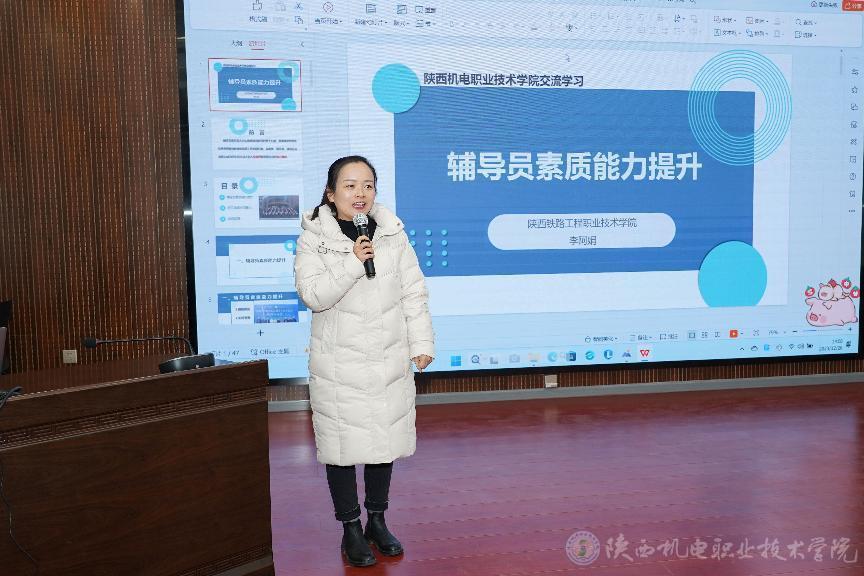 陜西鐵路工程職業(yè)技術(shù)學(xué)院工程管理與物流學(xué)院專職輔導(dǎo)員李阿娟老師圍繞輔導(dǎo)員素質(zhì)能力提升主題開展經(jīng)驗(yàn)交流,她充滿激情地分享了自己參加陜西省輔導(dǎo)員素質(zhì)能力大賽的經(jīng)驗(yàn)與心得體會(huì),并從十多年的輔導(dǎo)員工作經(jīng)歷出發(fā),講述了如何做好輔導(dǎo)員的工作的點(diǎn)點(diǎn)滴滴,李老師的愛生情懷及思辨能力,深刻吸引與感染了每一位老師。