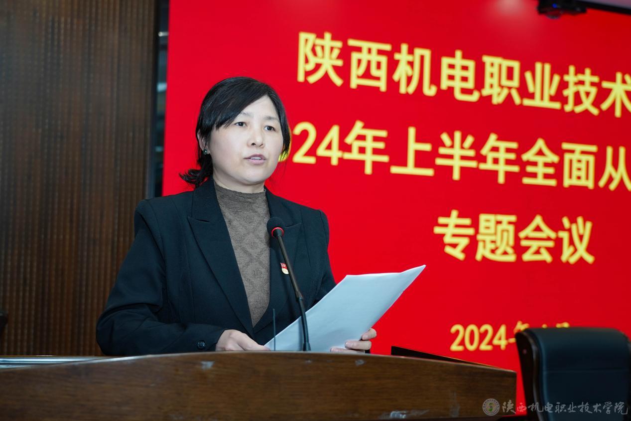 4月11日,陜西機(jī)電職業(yè)技術(shù)學(xué)院黨委在蟠龍校區(qū)博學(xué)樓111會議室召開2024年全面從嚴(yán)治黨工作會議,黨委書記伊遜智出席會議并講話,黨委副書記、紀(jì)委書記陳紅梅主持會議,校領(lǐng)導(dǎo)、紀(jì)委委員、全體中層干部及部門負(fù)責(zé)人、科級以上干部、各黨支部紀(jì)檢委員參加會議。