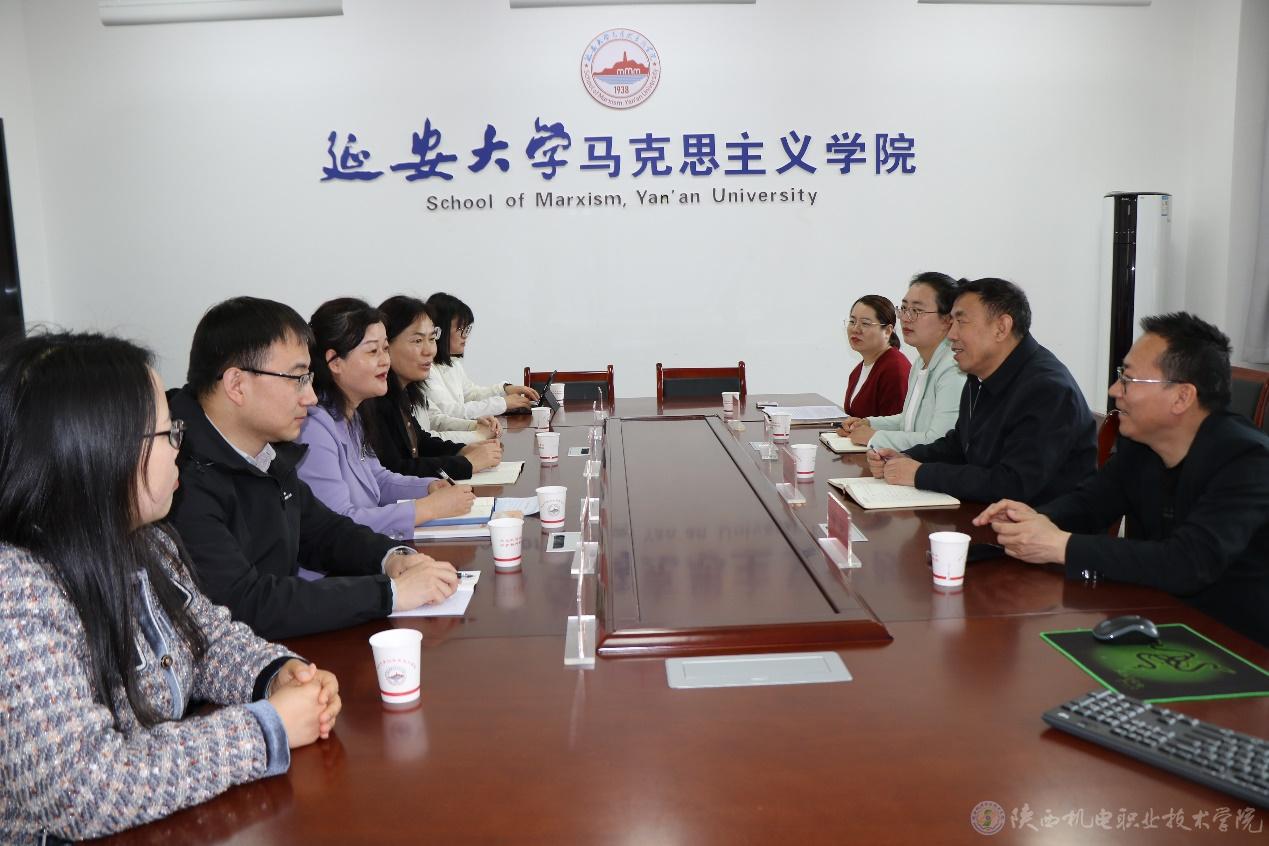 4月19日,陜西機電職業(yè)技術學院黨委副書記、紀委書記陳紅梅,馬克思主義學院負責人王康、德法教研室主任陳歡、概論教研室主任齊曉紅一行赴延安大學和延安職業(yè)技術學院學習交流。