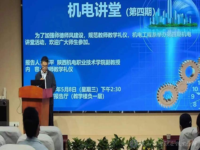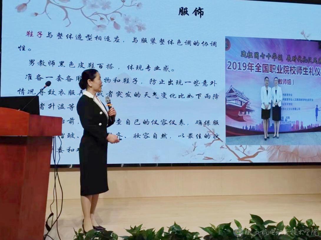 5月8日,應西北工業(yè)學校邀請,我校馬克思主義學院IPA國際注冊禮儀師邢平副教授作了題為《教師教學禮儀》專題講座。講座由西北工業(yè)學校機電工程系主任郝星照主持,全校教師聆聽了講座。