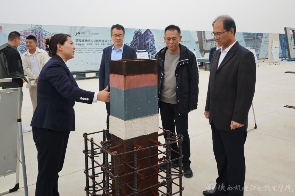 為了推進(jìn)校企合作譜新篇,科技創(chuàng)新創(chuàng)新高,10月5日下午,陜西機(jī)電職業(yè)技術(shù)學(xué)院黨委書記伊遜智帶隊(duì),智能制造學(xué)院院長(zhǎng)馬海彥,鐵道工程學(xué)院黨支部書記、院長(zhǎng)盧彥峰等一同走訪了陜西聚旺地產(chǎn)集團(tuán),在公司執(zhí)行董事兼總經(jīng)理杜學(xué)軍的陪同下,對(duì)蟠龍·觀山堂裝配式鋼結(jié)構(gòu)住宅項(xiàng)目、施工現(xiàn)場(chǎng)工藝工法、裝配式建筑智能建造技術(shù)進(jìn)行了深入了解,并圍繞鋼構(gòu)建筑智能建造領(lǐng)域進(jìn)行校企合作洽談。