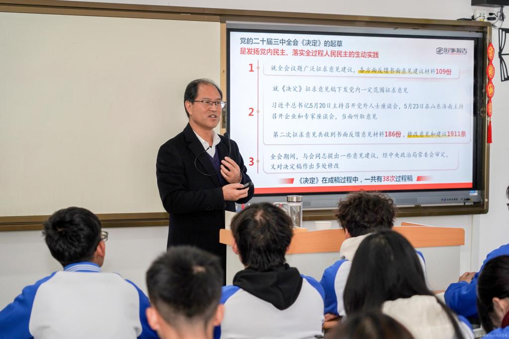 課上,伊遜智詳細(xì)闡述了黨的二十屆三中全會對進一步全面深化改革、推進中國式現(xiàn)代化的總體部署,特別是在教育、科技、人才、經(jīng)濟體制、政治體制、文化體制、社會體制、生態(tài)文明體制、國防和軍隊改革等方面的最新舉措。他強調(diào),這些改革舉措不僅為新時代中國特色社會主義事業(yè)提供了強大動力,也為青年大學(xué)生的成長成才創(chuàng)造了更加廣闊的空間。青年大學(xué)生要樹立正確的世界觀、人生觀、價值觀,積極投身改革實踐,為國家的繁榮富強貢獻(xiàn)自己的智慧和力量。